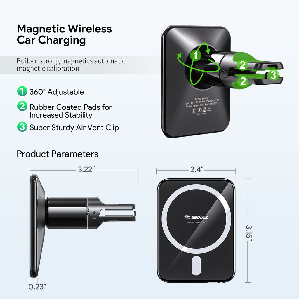 15W Magnetic Wireless Charger Air Vent Car Mount