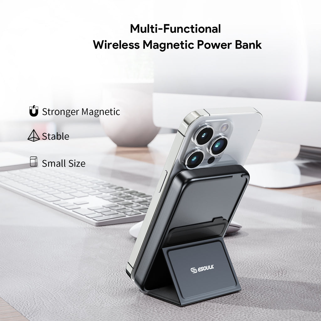 The Esoulk 5000mAh Magnetic Wireless Charger is a sleek, compact, and powerful charging solution designed for on-the-go convenience. Featuring a strong magnetic alignment, it securely attaches to magnetic compatible devices, ensuring a seamless wireless charging experience. The built-in Type-C cable adds extra versatility, allowing you to charge non-wireless devices effortlessly.