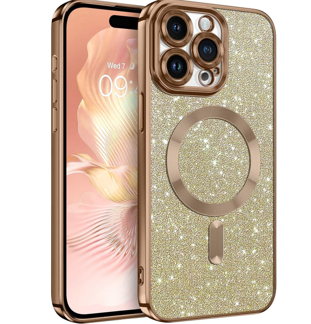 Gold Glitter Soft TPU Case with Magnetic Compatibility for iPhone 17 Pro Max