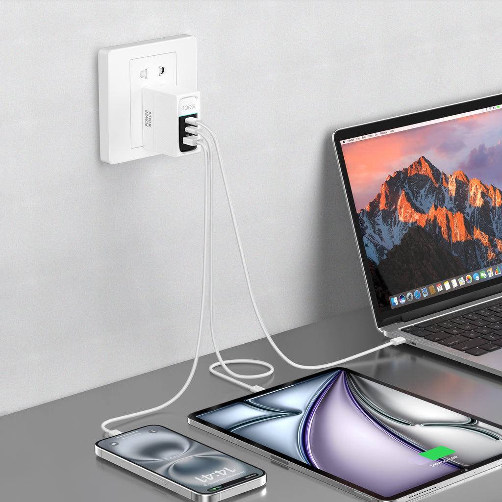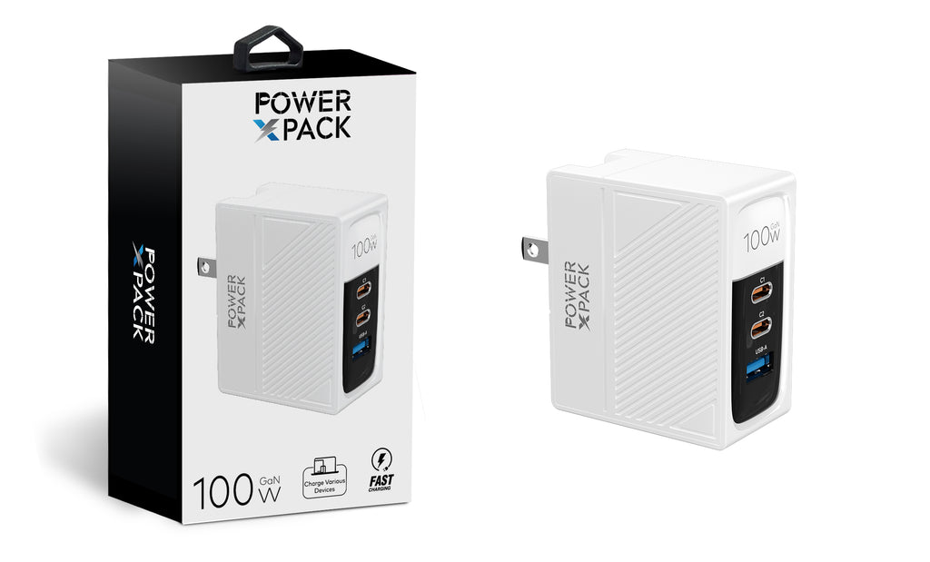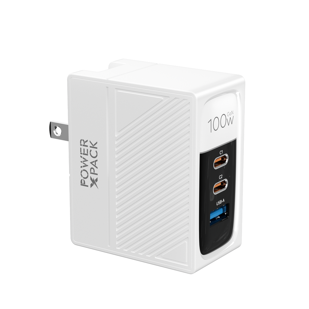 Charge smarter and faster with the Power X Pack 100W GaN Charger. Equipped with two USB-C ports and one USB-A port, this powerhouse delivers up to 100W of total output—perfect for charging laptops, tablets, smartphones, and more.